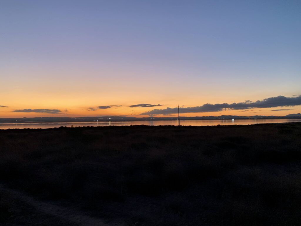 Hienot maisemat Torreviejan vaaleanpunaisen suolajärven rantaan. Upea paikka auringonlaskuille!