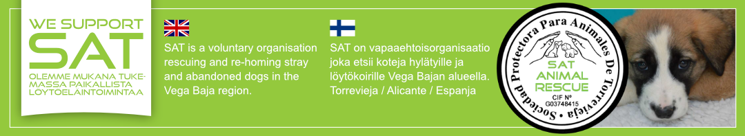 Kaikki SATin löytökoirat saavat laadukasta hyvää päivittäistä hoitoa ja huomiota. Eläinlääkäri käy paikalla viikoittain ja koirat toipuvat aikaisemmasta kovasta elämästään nopeasti. Sen jälkeen ne tarvitsevat rakastavan kodin. Turvallisen ympäristön ja sydämen jonka valloittaa – SINUT?